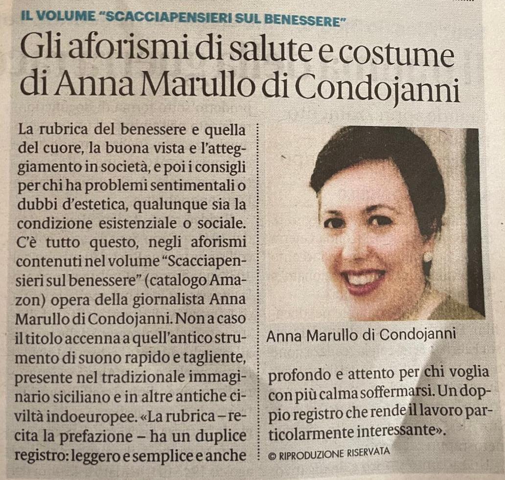 La rubrica di Anna Marullo ha un duplice registro: leggero e semplice, per chi ha solo la possibilità di una lettura rapida; profondo e attento, per chi, invece, voglia con più calma soffermarsi sui singoli aforismi. Proprio questo doppio registro rende il lavoro particolarmente interessante. Di fatto, piccole massime di vita quotidiana, in cui ognuno si può riconoscere o di cui ognuno può sentire il bisogno, sono anche insegnamenti di vita, semplici ma molto efficaci.